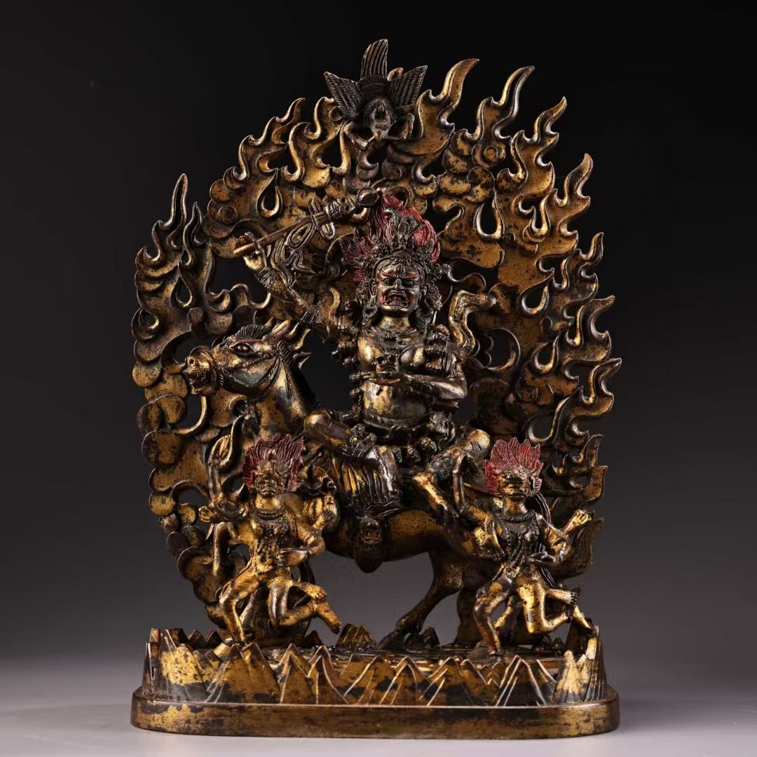 > 仏像 清代 旧蔵 チベット古寺 古銅 泥金 蔵伝吉祥天母仏像1体 銅製 銅琉金 唐物 收蔵品 時代物 古美術 古置物 希少珍品 供養品 文房具6.17