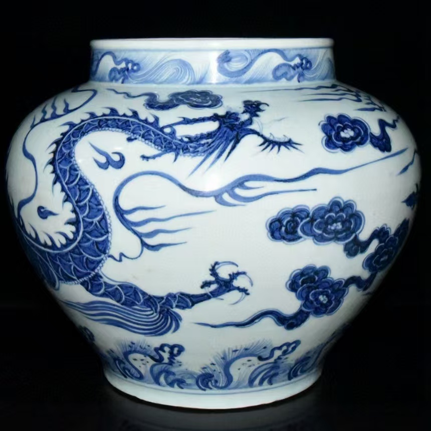 - 磁器 秘藏 元代 成吉思汗款 青花龍紋罐 酒器 茶器 唐磁 染付 陶磁器 收蔵品 古美味 時代物 古美術 古置物 希少珍品 中國文玩6.117
