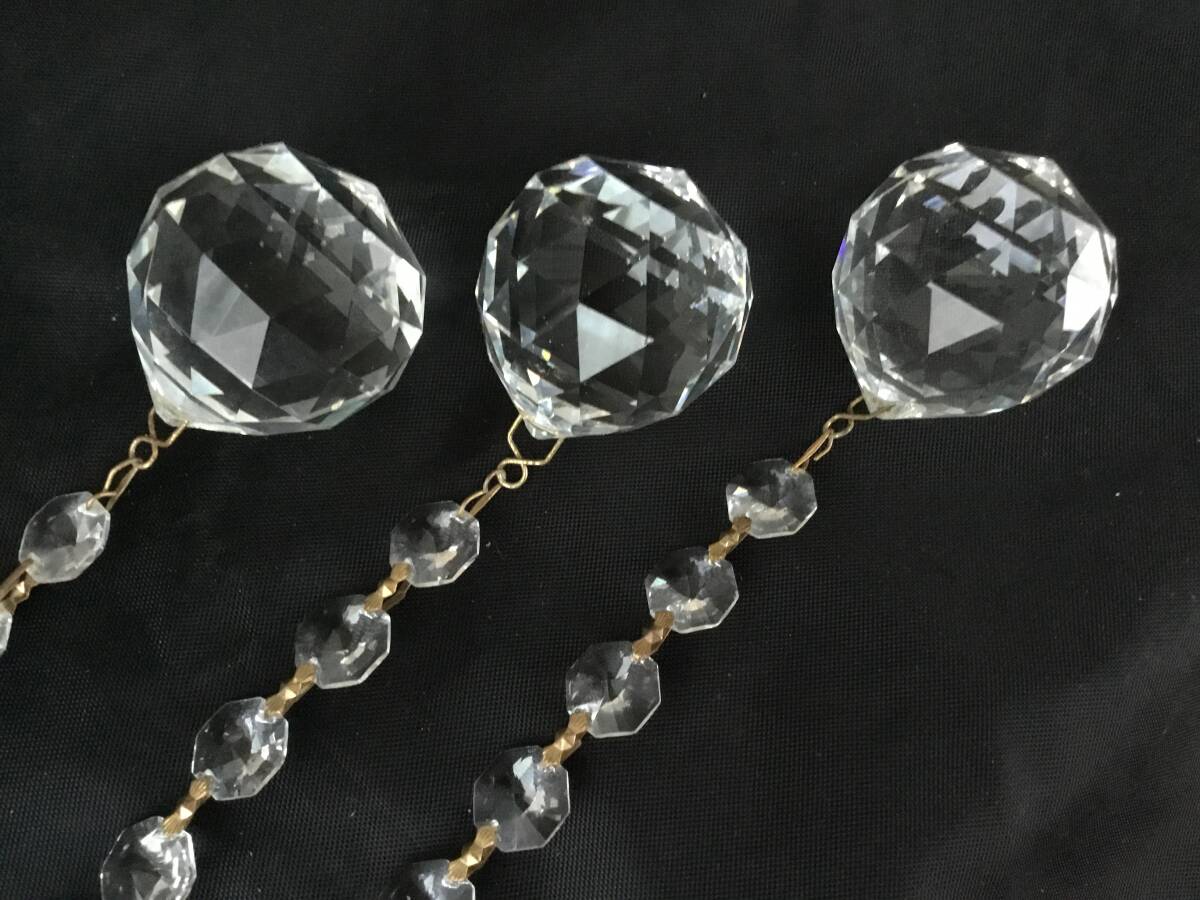 > 「スワロフスキー」シャンデリア 飾りボール チェーン玉 3、5、7粒 全クリスタルガラス 全面カット入り 金具金メッキ? 3粒セット