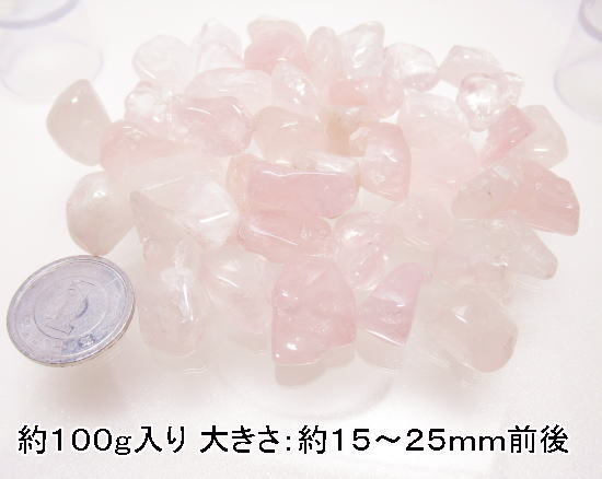 - (閉店価格)NO.3 ローズクォーツさざれ石(大) (約15~25mm)(約100g入り)<慈愛・感情の支え>原石を生かす 天然石現品