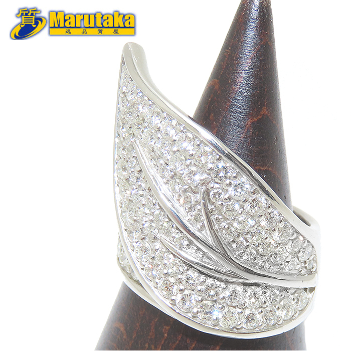 > Pt900 ダイヤモンド リング 2.34ct 17号 24.7g 鑑別書 プラチナ 葉 指輪 植物 モチーフ 逸品質屋 丸高 尼崎市