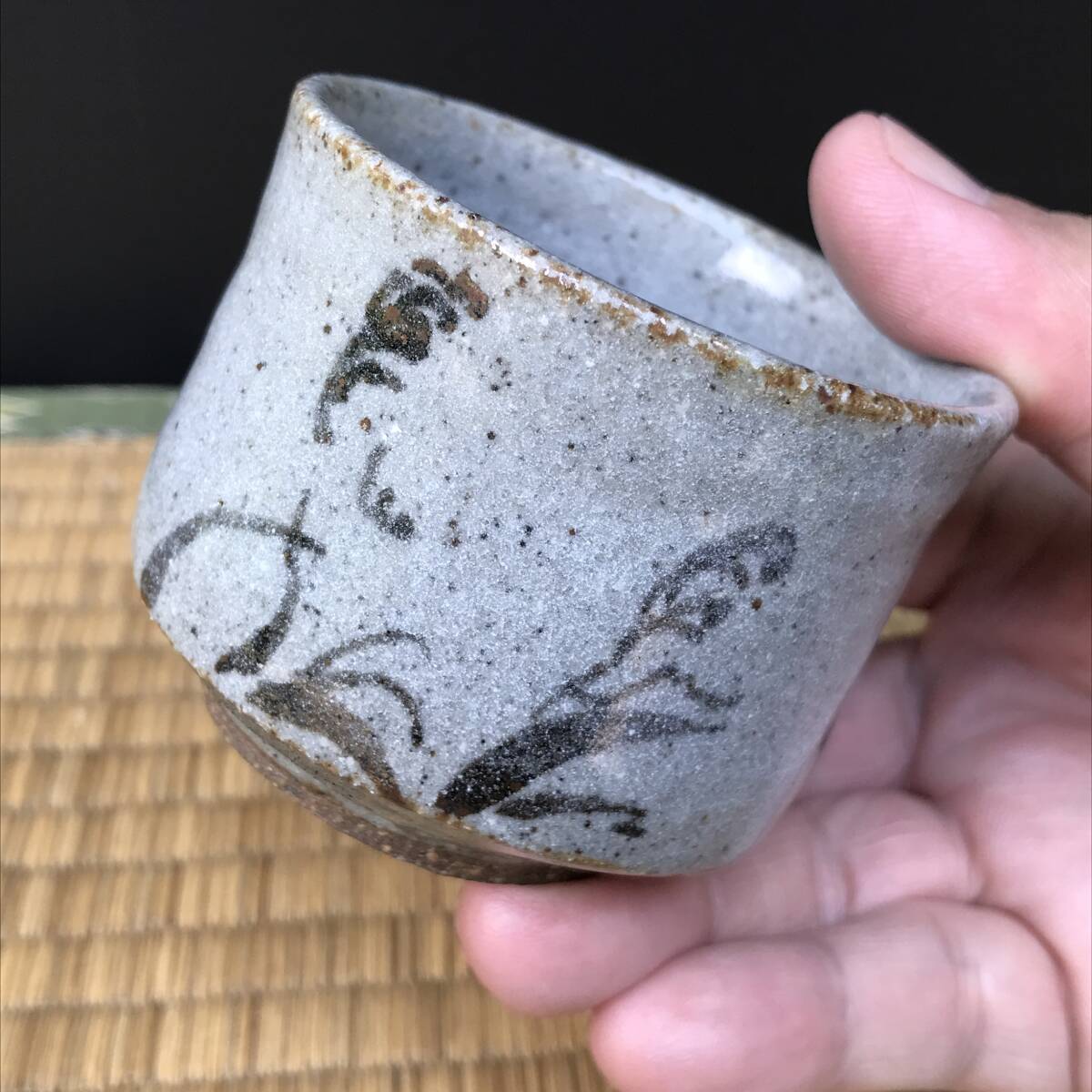 > すすき絵紋のぐい呑み、バーナードリーチ銘印?酒器 猪口 小鉢 盃 杯 珍味入れ(R70616_B)