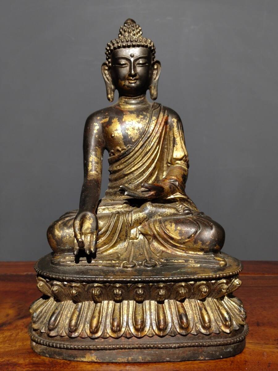 - 『館蔵珍品 銅製 泥金 朱砂 釋迦牟尼像 仏像 宗教 仏教古美術 供養品』稀少珍蔵品 古賞物 貴重物品 収蔵品 中国古美術 時代物 古董品
