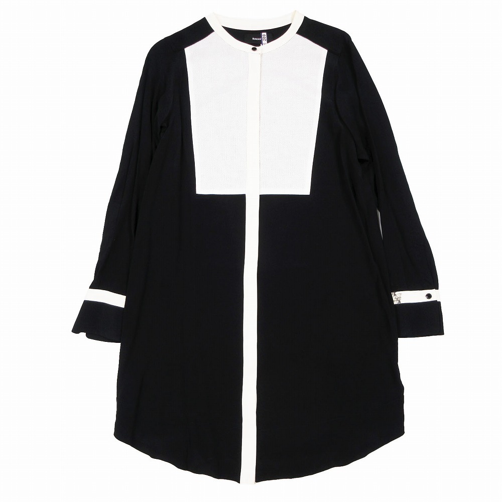 > バッカ BACCA シルク バンドカラー シャツ チュニック ワンピース ブラウス 長袖 カットソー トップス 1 S ブラック ur30 【中古】