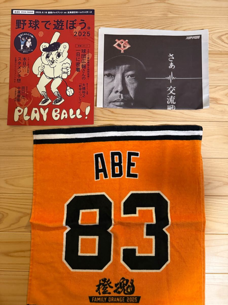 - 巨人 ジャイアンツ 阿部慎之助 2025 配布 東京ドーム タオル + 野球で遊ぼう ほぼ日 糸井重里 交流戦 新聞