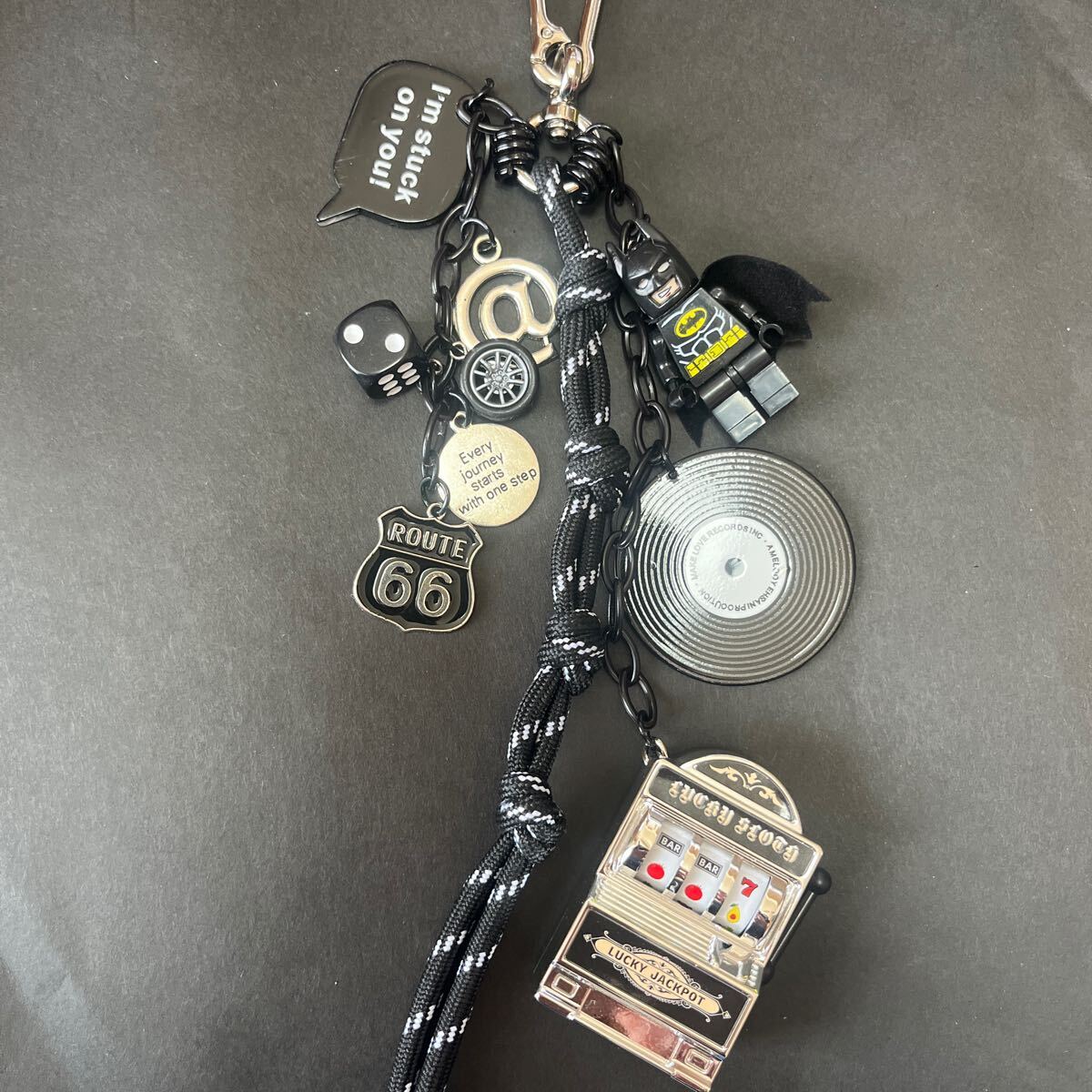 - ブラックモノトーンじゃらじゃらキーホルダーチャームストラップ