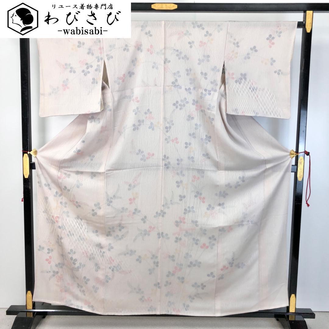 透け感のある薄桜色のお色味に浮かび上がる萩模様がデザインされた雰囲気の良い素敵な柄裄のお品でございます。
