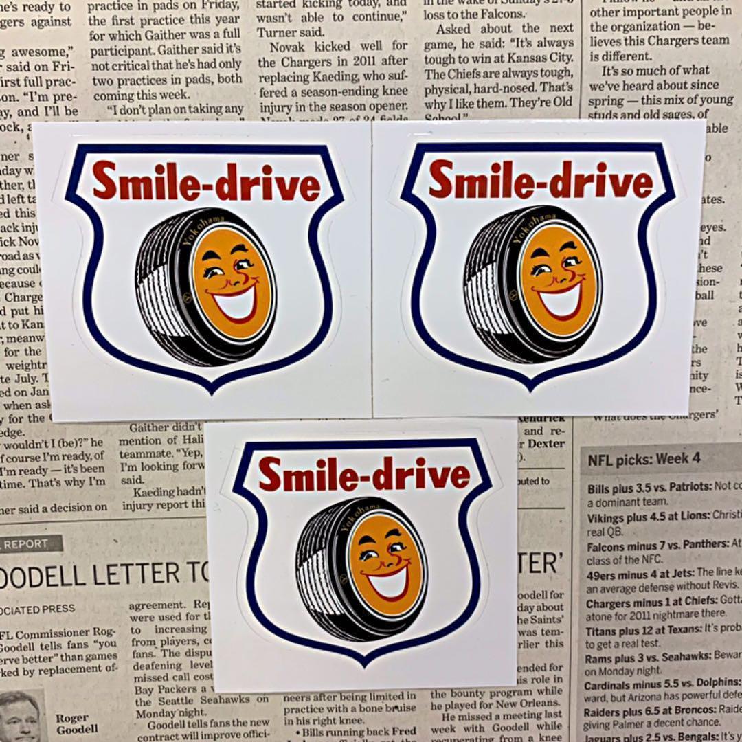 > ステッカー3枚セット/YOKOHAMA TIRE ヨコハマタイヤ Smile-drive シール 防水 車 バイク カーアクセサリー 旧車 車 カスタム