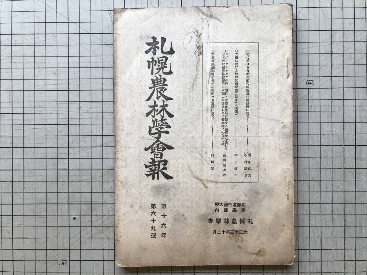 > 『札幌農林学会報 第十六年第六十九号 大正十三年十二月』中村誠助・前川徳次郎・内田登一 他 1924年刊 ※北海道帝国大学農学部内 他 00288