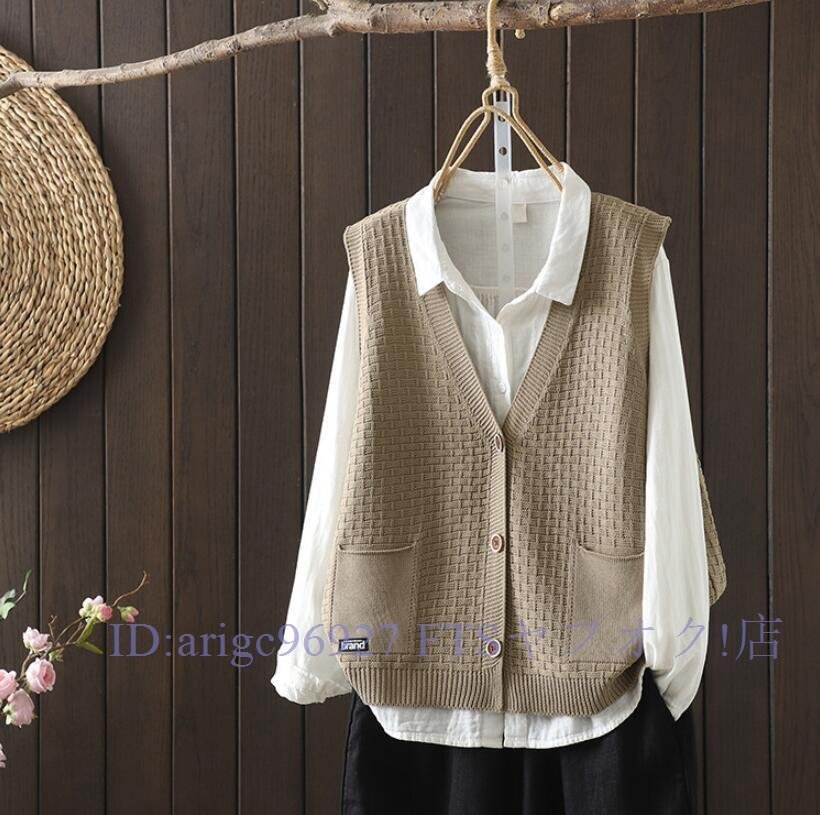 - 新品★秋ニット ベスト レディース 前開き ニットベスト おしゃれ 着回し トップス 体型カバー Vネック 森ガール 復古風 ベストキャメル