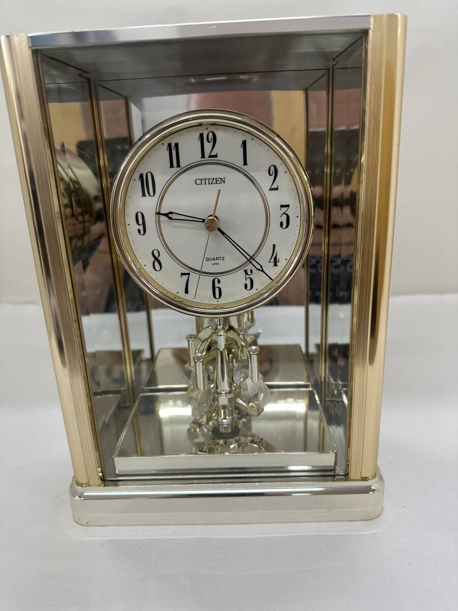- 【菊水-166】(MZ)置き時計/シチズンクォーツ/シルバー・ゴールド/回転飾り/レトロ/動作確認済(AK)