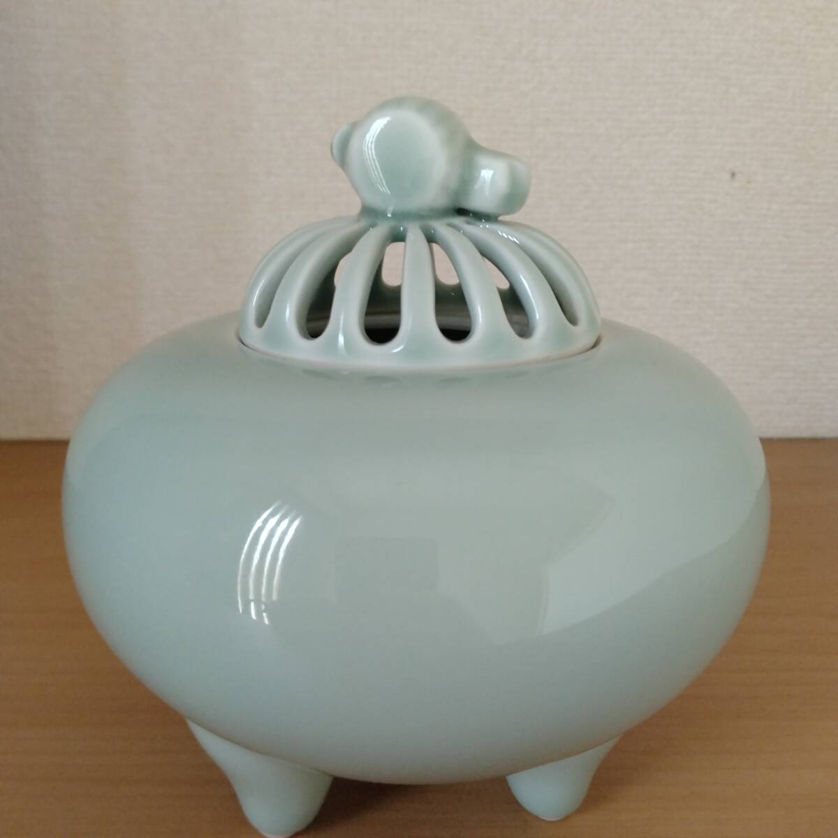 - 色鍋島 市川冬山作 三足青磁香炉 小槌蓋付 箱なし
