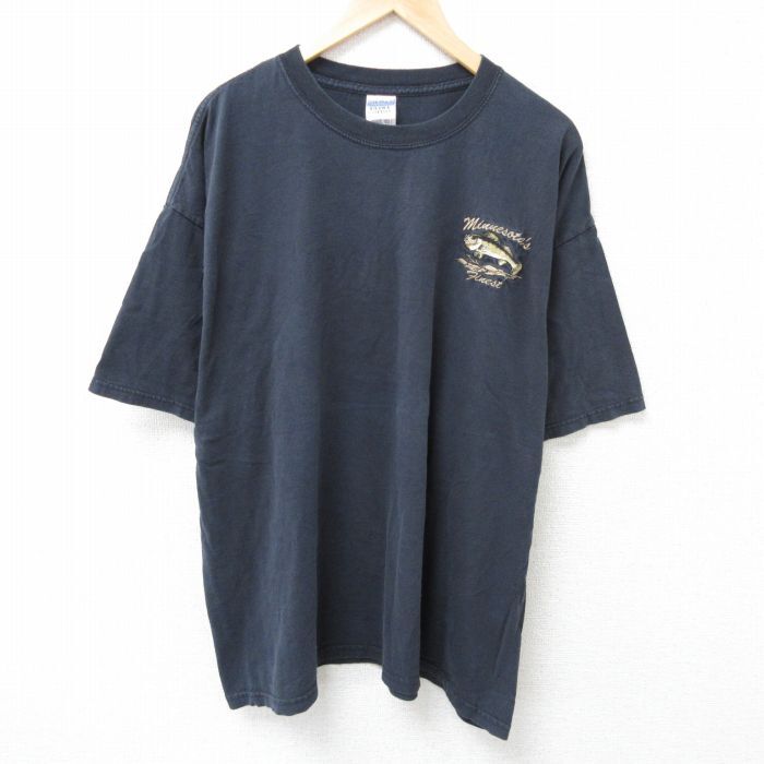 - XL/古着 半袖 ビンテージ Tシャツ メンズ 00s 魚 大きいサイズ コットン クルーネック 黒 ブラック 25jun14 中古
