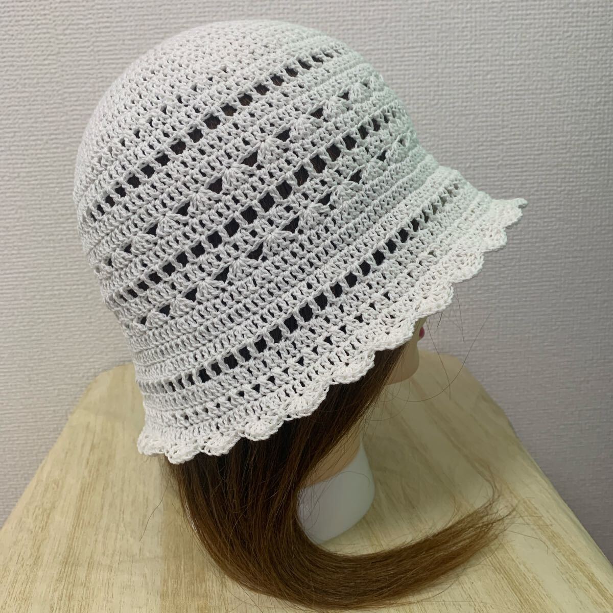 - 【a60】コットン100% レース編み フリル ホワイト バケットハット 帽子