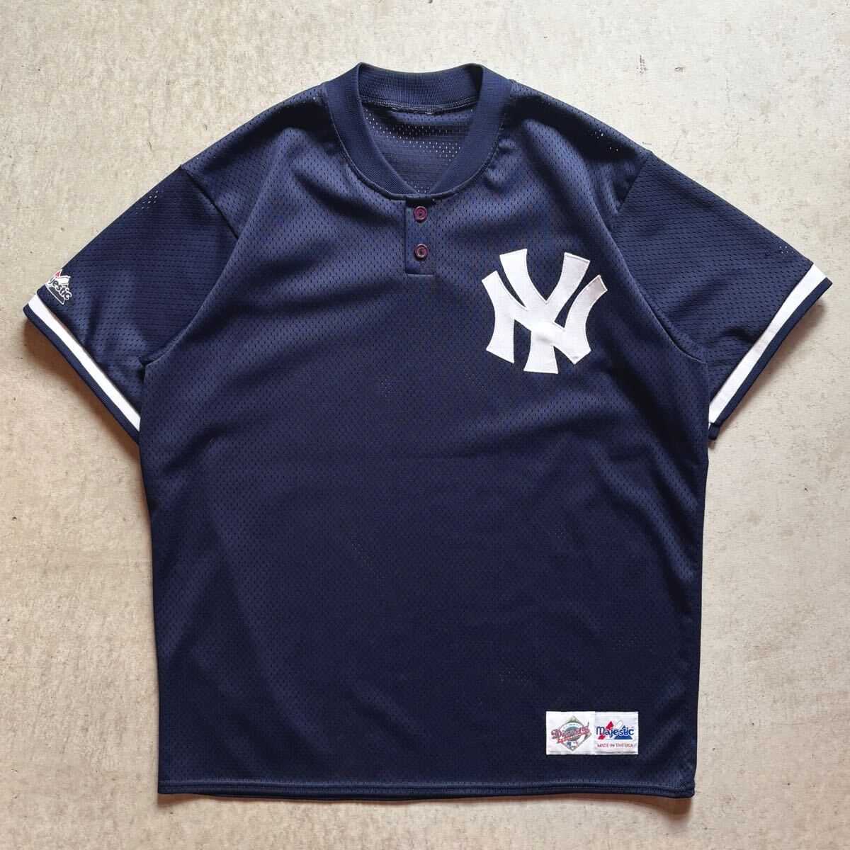 - 【USA製】90s Majestic マジェスティック ベースボール Tシャツ Tee ユニフォーム メンズ XL相当 ヤンキース プルオーバー MLB vintage