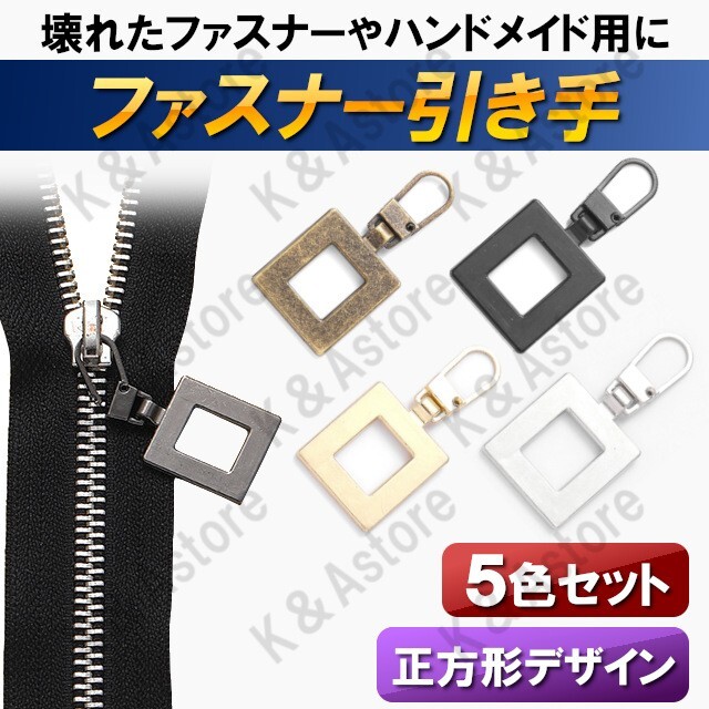 > 【匿名配送】ファスナー 引き手 引手 金具 持ち手 取手 チャック ジッパータブ 財布 チャーム トートバッグ ハンドメイド パーツ 正方形