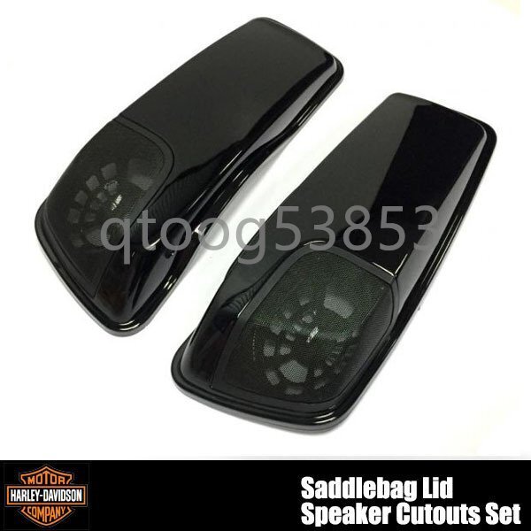 > ハーレー サドルバッグ スピーカー 格納式 蓋 ふた 左右 ブラック 黒 カスタム リッド 2014-2022 ツーリング バガー サイドバッグ