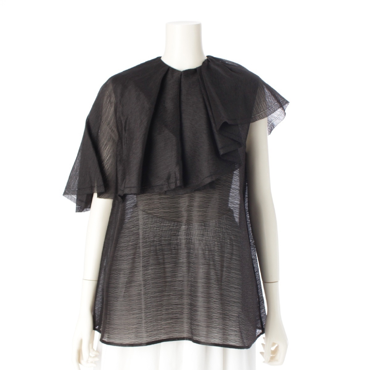 - ドゥロワー 23SS リネン×シルク シースルー ジャガード ブラウス 6521-299-1030 ブラック F【中古】