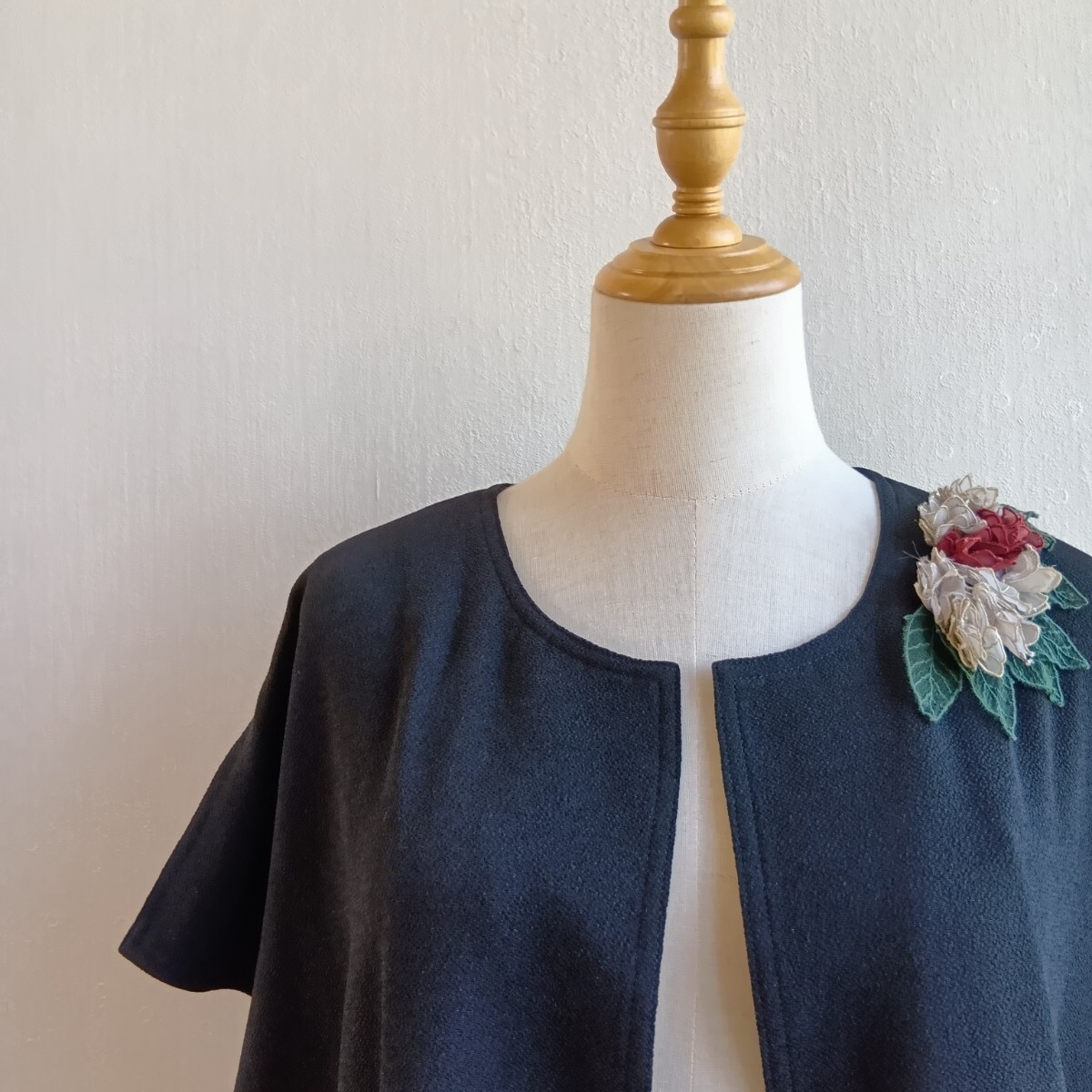 - 日本製 ちりめんカーディガン 花 コサージュ ブラック