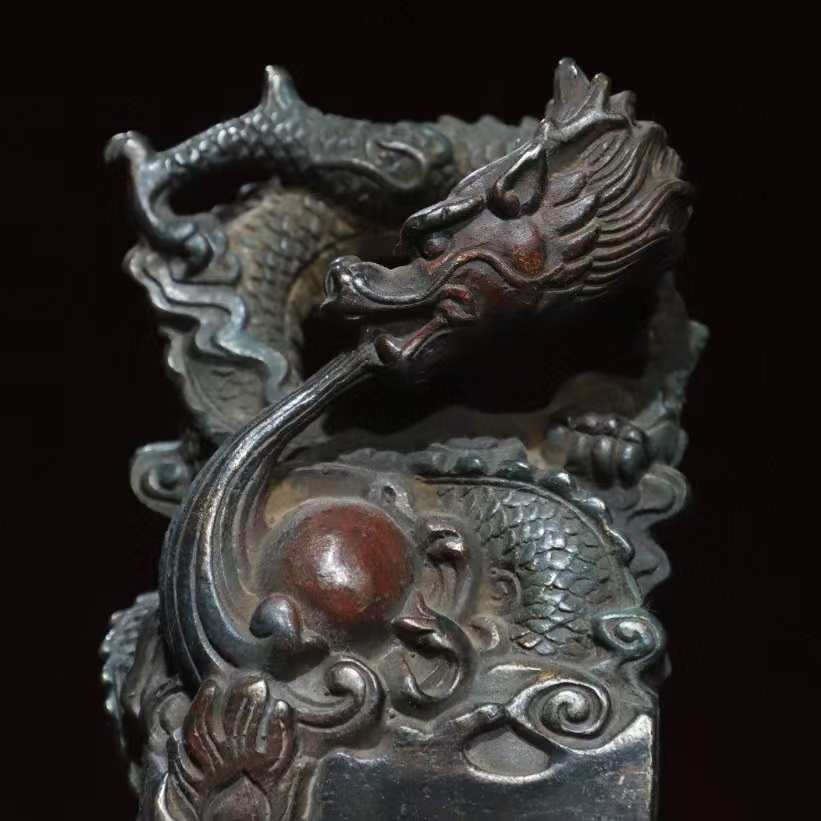 - 清代 印章 旧蔵 チベット古寺 古銅拓金【神竜印】 印鑒 古印材 印鑑の方 銅製 銅琉金 唐物 收蔵品 時代物 古置物 希少珍品 供養品 文房具