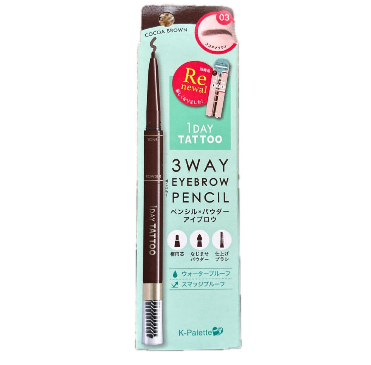 - 新品 Kパレット 1DAY TATTOO スリーウェイ アイブロウ ペンシル 03 ココアブラウン パウダー 3WAY ウォータープルーフ ブラウン 眉