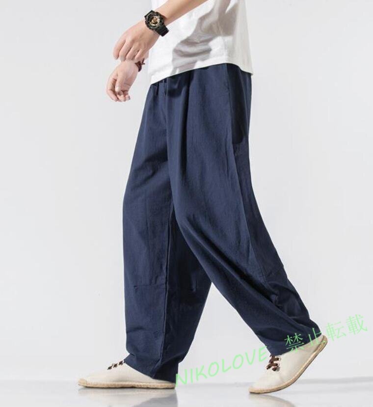 - 新品 ワイドパンツメンズ カジュアルバギーパンツ サルエルパンツ春物ボトムス無地 イージーパンツ リラックス 涼しい パンツ ネイビー XL