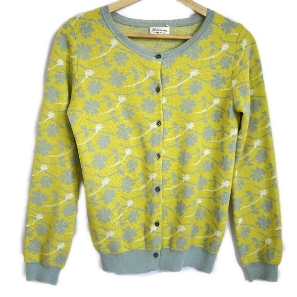 > サリースコット Sally Scott カーディガン サイズM - イエロー×ブルーグレー レディース 長袖/クローバー 美品 トップス