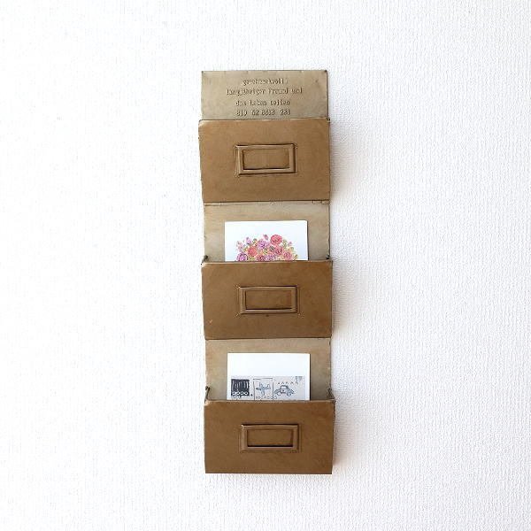 - ウォールポケット アンティーク おしゃれ 3段 縦長 金属 レターラック CD シャビーなブリキのカードラック 送料無料(一部地域除く) spc5605