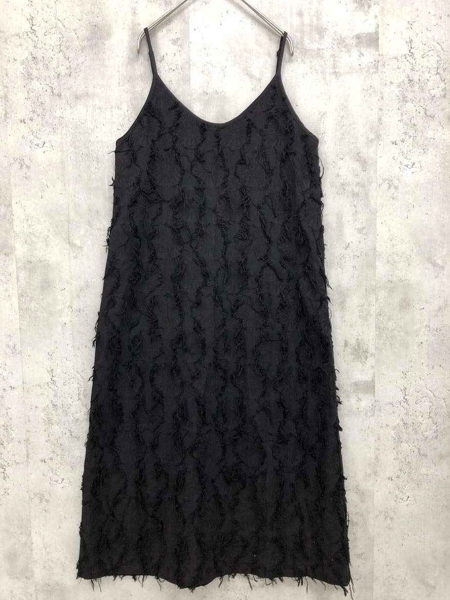 - Bab バブ 綿麻 フリンジ ロング キャミソール ワンピース size38/黒 ■■ ☆ ffb6 レディース