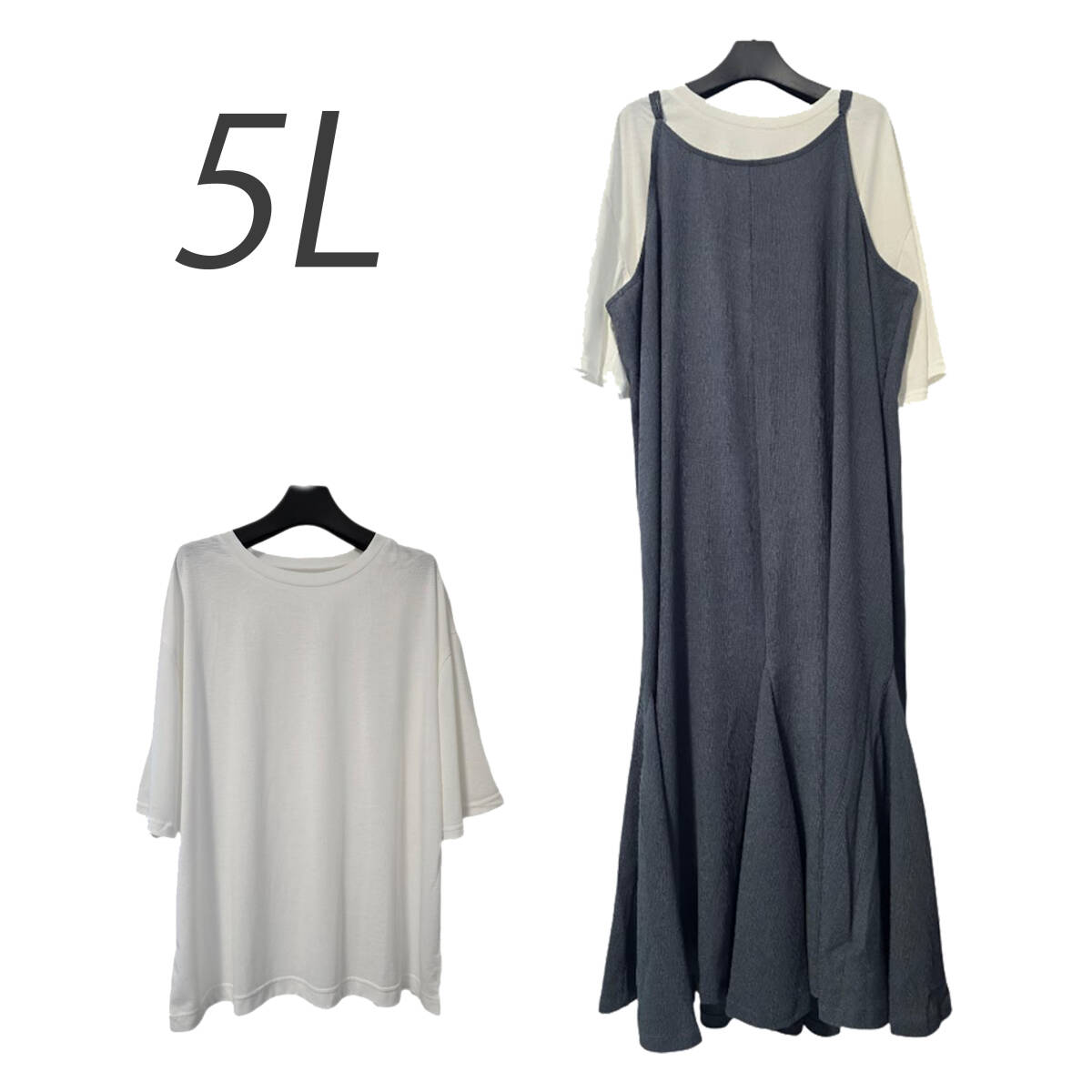 - 新品/2点/セット/Tシャツ/キャミワンピース/5L/白/グレー●x0032