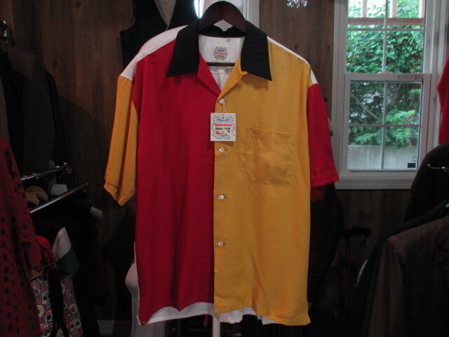 > 新品 デッドストック 国産ヴィンテージ ボウリングシャツ クレイジーパターン 日本製 ボーラーシャツ ROCKNROLL ROCKABILLY ROCKERS