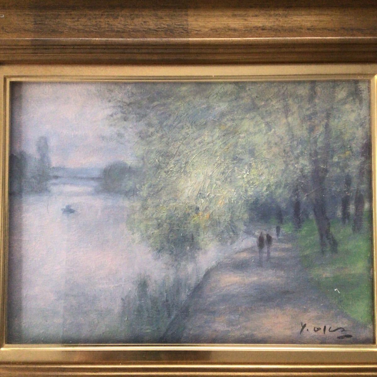 - 真作》油彩画 額装 岡義実 マルヌ河 真作