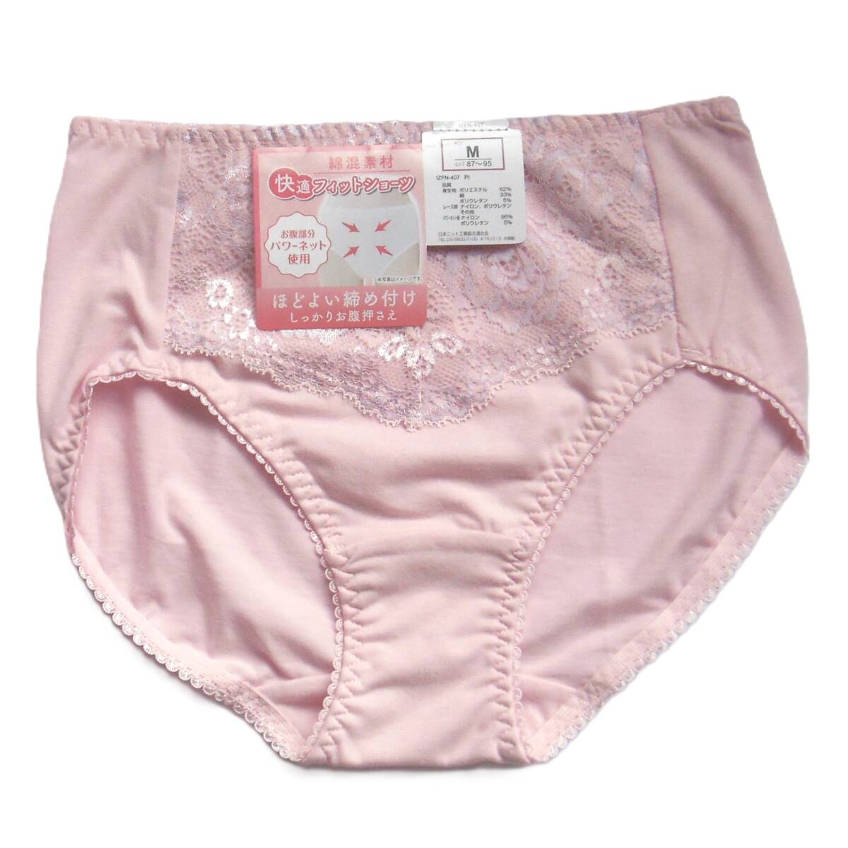 > しっかりお腹押さえ/パワーネット 快適フィットショーツ M 綿混 ほどよい締め付けレース ローズ/薔薇柄 ガードル/パンツ ピンク 新品送料込