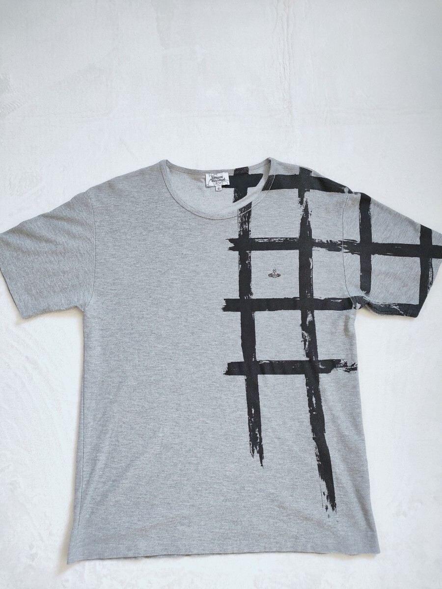 - ヴィヴィアンウエストウッド マン Tシャツ 美品 46 グレー 半袖 Vivienne Westwood Man ロゴ 刺繍
