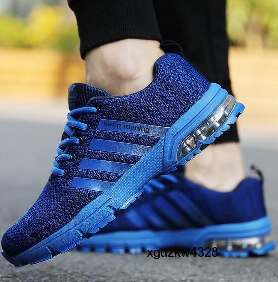 > メッシュ 通気性 アウトドア ゴルフ スポーツ スニーカー トレーニング シューズ エアクッション メンズ ゴルフトレーナー ブルー 白 多色
