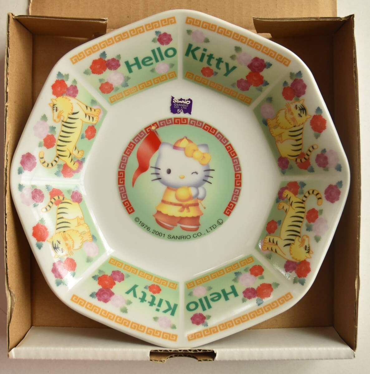 > サンリオ ハローキティ 飲茶がいっぱい 中華皿 八角皿 絵皿 虎 グリーン チャーハン皿 陶磁器 レア品 超レア 激レア