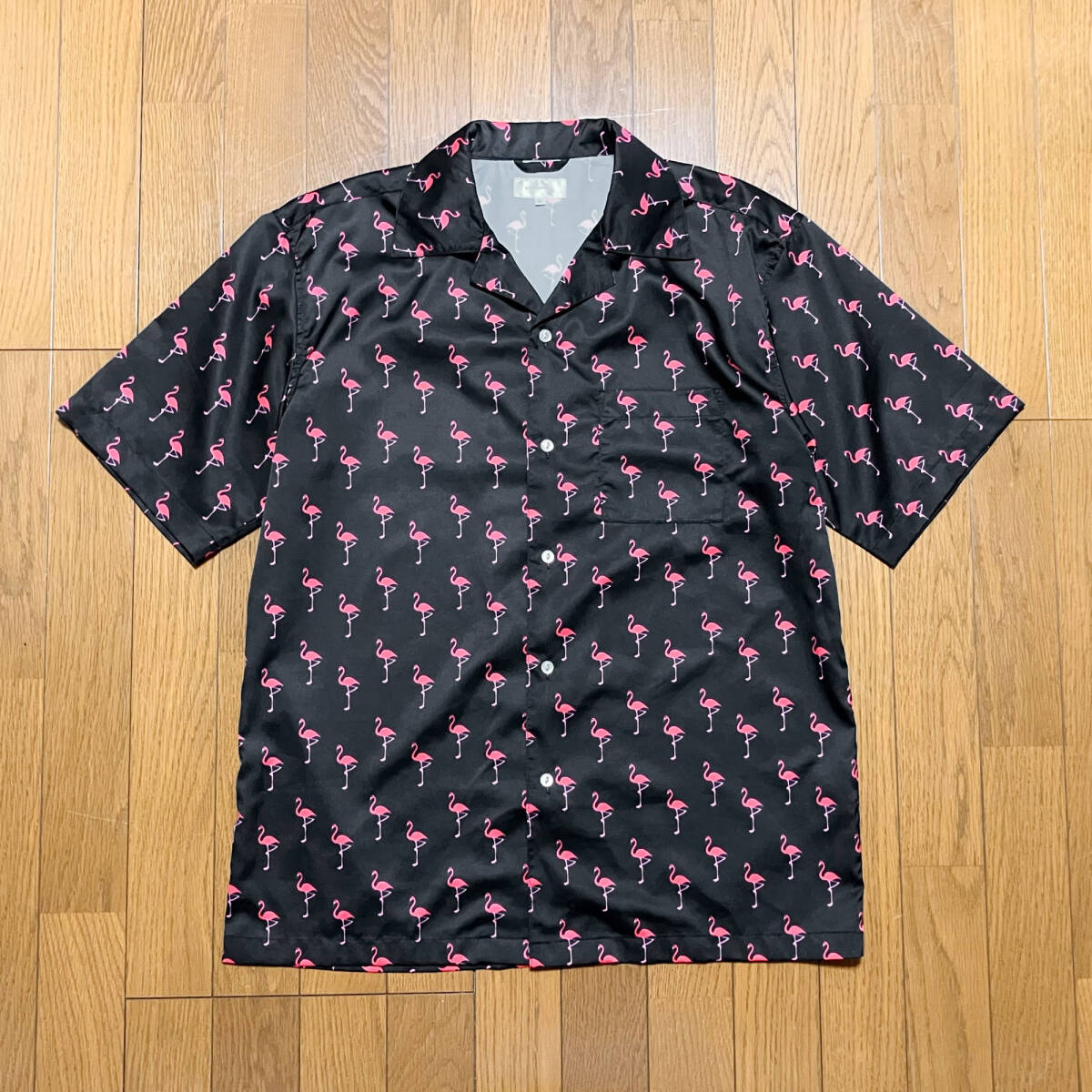 - nilway オープンカラーシャツ フラミンゴ柄 BLK サイズL