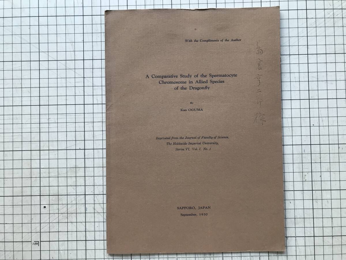 - 『A Comparative Study of the Spermatocyte Chromosome in Allied Species of the Dragonfly 別刷』小熊捍 1930年刊 ※札幌 他 00303