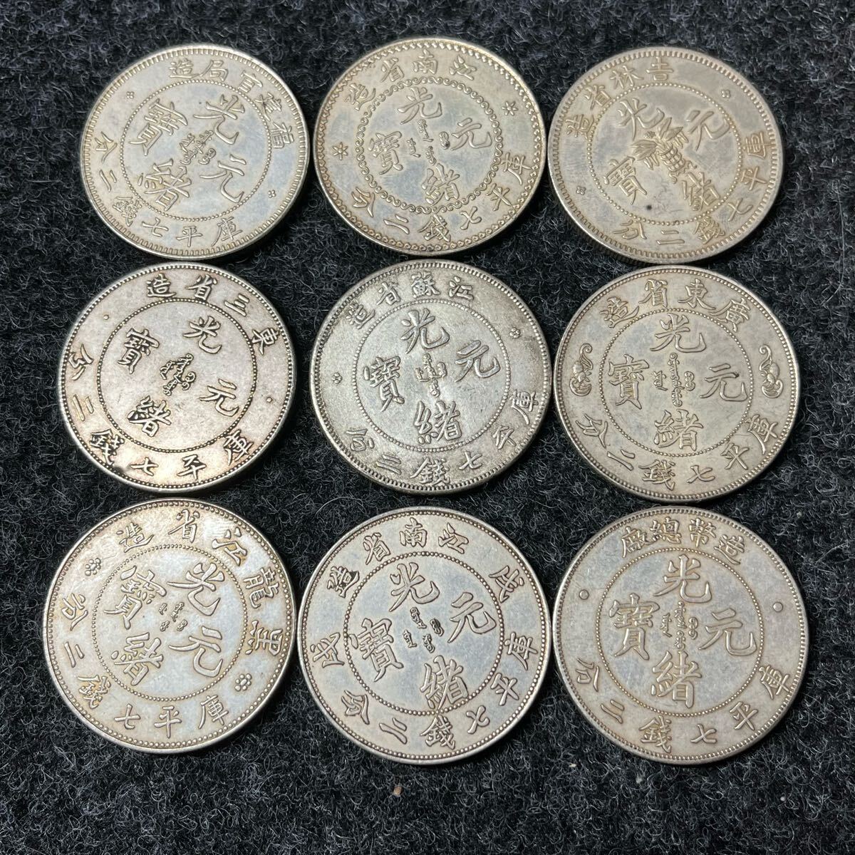 - 極美品 希少 庫平7銭2分 光緒元寶 9枚セット 中国 清 古銭 骨董品 大型硬貨 外国銀貨 貿易銀 コイン 銀貨 古銭 アンティーク コレクション