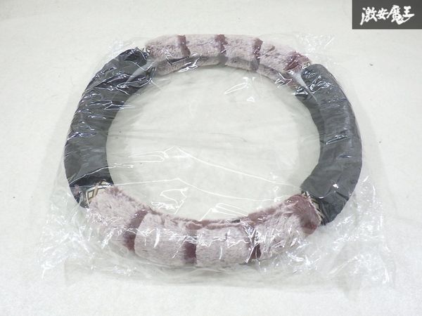 > 【未使用 アウトレット】 社外 ステアリングカバー ハンドルカバー フェイク ショート ファー 直径約37~38cm 赤茶 黒 等 内装 棚2F-M-5