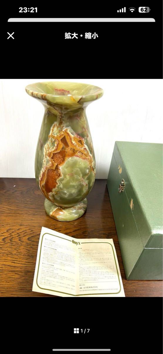 - グリーン オニキス 高級 花瓶 高さ約30cm レア