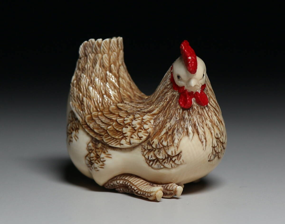 - 【心】k448 根付 雌鶏 見事な彫り!