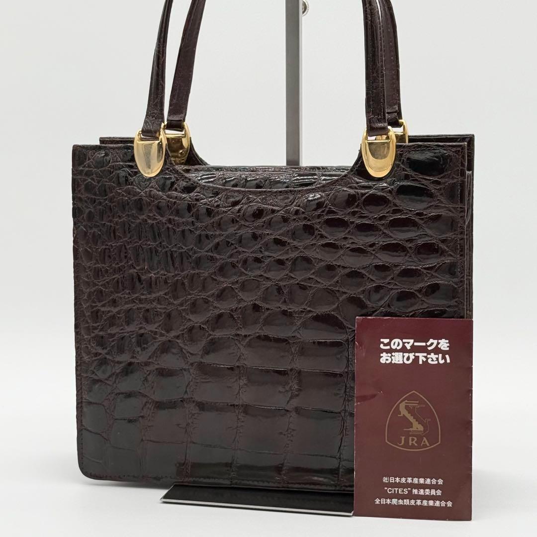 - 【JRA認定・良品】シャイニングクロコダイル CROCODILE 鰐 ワニ ハンドバッグ エキゾチック フォーマル レディース ブラウン BF370905C