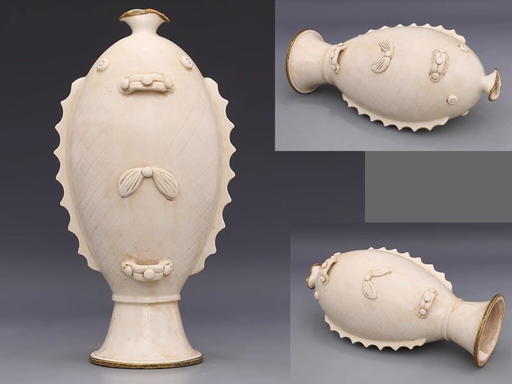 - AD01■中国古玩 唐物 宋時代 定窯 包金魚形瓶 珍品■高さ29.5cm・直径12cm■