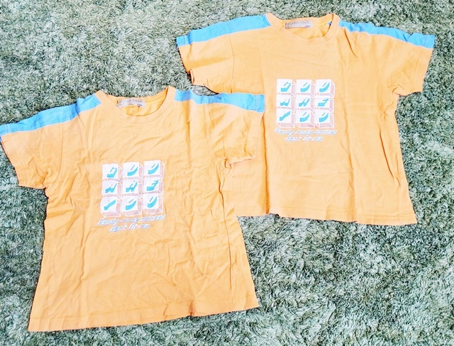 > 【双子・年子】120㎝ PASS ROAD 半袖 Tシャツ オレンジ×水色 2枚セット