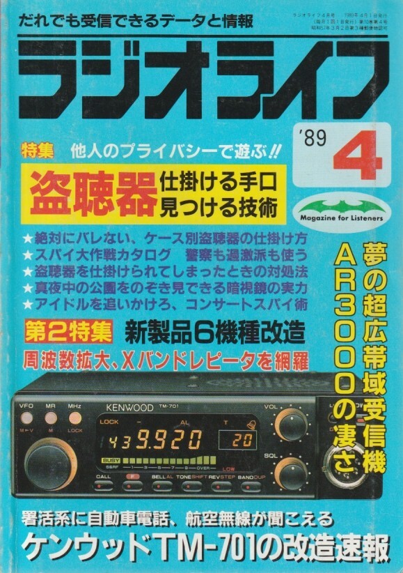 > ラジオライフ 1989年04月号/マリネットホン/アルインコ電子/盗聴器の手口技術/コンサートワッチ/AR-3000/IC-2S/TM-701/IC-2500/FT-704