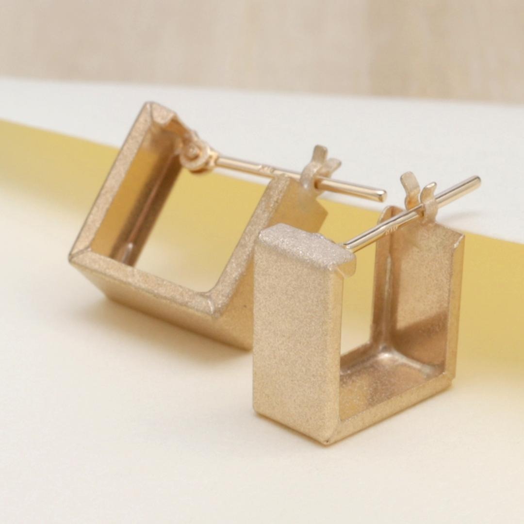 - 【10金】つや消しスクエアフープピアス K10イエローゴールド マット仕上げ