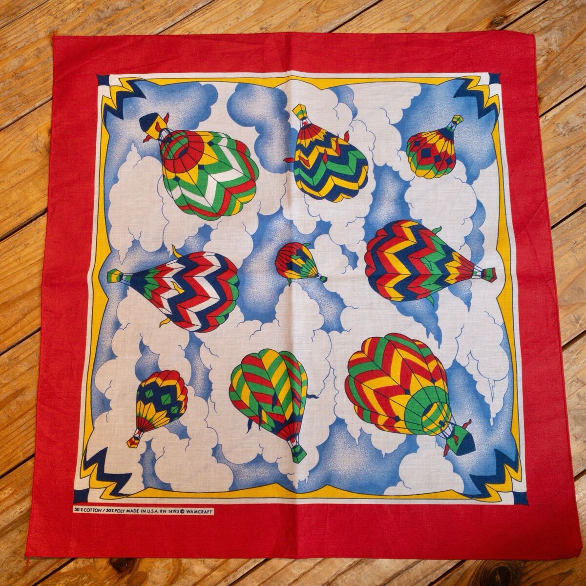 - 送料無料 Vintage バンダナ ハンカチ 気球柄 アメリカ仕入れ マルチカラー カラフル USA製 レッド 雑貨 空 スカイ ヴィンテージ A1616