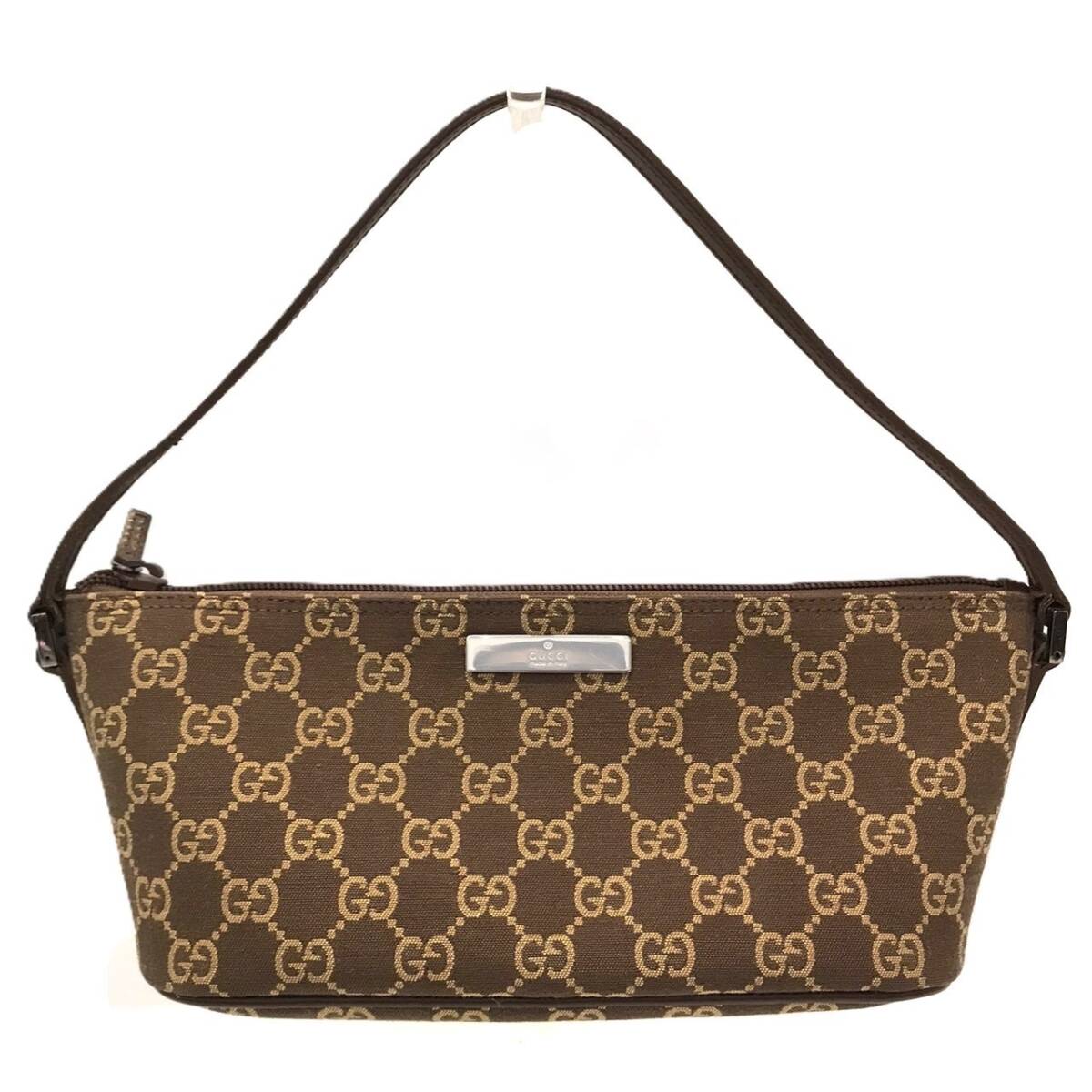 > グッチ アクセサリーポーチ ハンドバッグ GGキャンバス レザー ブラウン 391103 GUCCI ABランク 中古