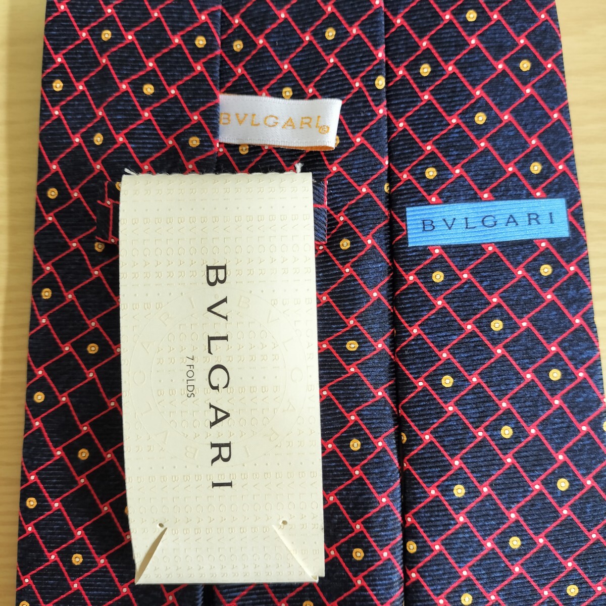 - ブルガリ(BVLGARI)紺赤格子柄セッテピエゲネクタイ新品 未使用 タグ付き